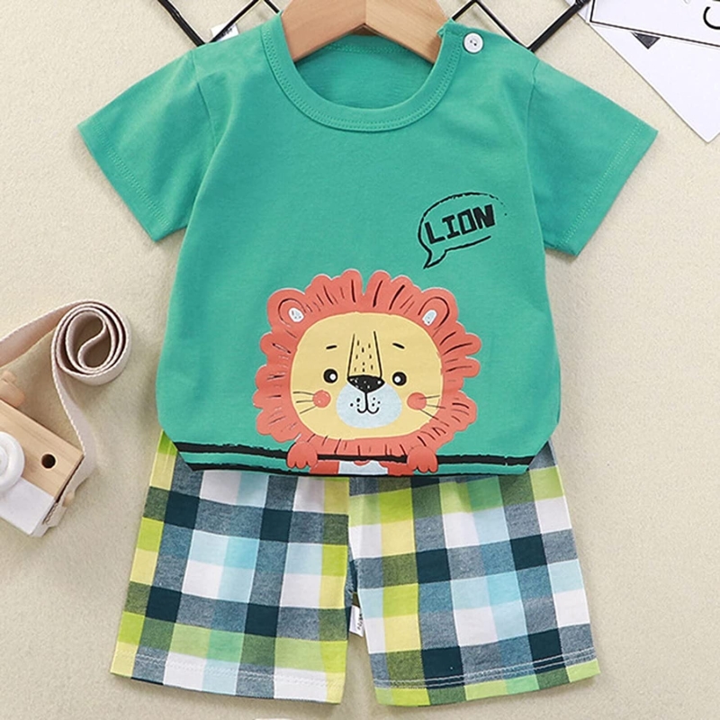 • Material: Cotton knit fabric with great breath-ability and elasticity, Style: Cute animal/cartoon prints in half length summer daily wear t-shirt with bottoms, very comfortable and attractive, will surely make your baby look even more adorable.