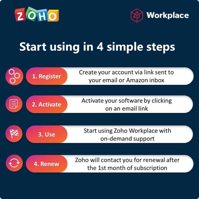 • Zoho will contact you for setup within 1 business day of registration. Provides premium support to help you in every step of the way
