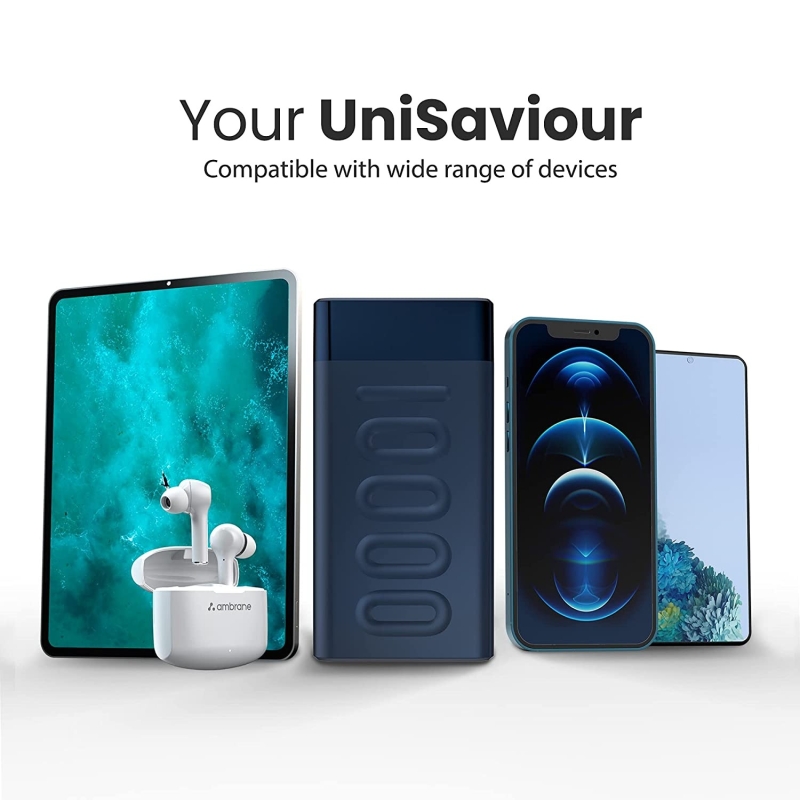 10000 مللي أمبير في الساعة - ليثيوم بوليمر سعة 10000 مللي أمبير تسمح لك بشحن أجهزتك بكفاءة عدة مرات. يمكنه شحن iPhone 12 - 2 مرات ، و OnePlus Nord - 1.5 مرة.