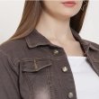 سترة صلبة مغسولة بأزرار ، لها ياقة منتشرة ، 2 جيوب ، زر للإغلاق ، أكمام طويلة ، حافة مستقيمة ، وقطن.