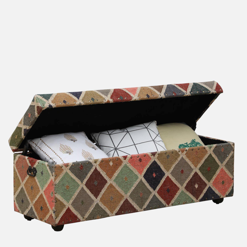 • The " Durees " and " Kilim" used for upholstery are handmade. They may marginally vary in each batch of handweaving/printing. The material used is deliberately hand buffed as a process to give it a rustic appearance.